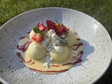 We've tuned our special offer for June to dumplings. In June, the strawberries are ripening, which the guys in the kitchen will use to fill light cottage cheese dumplings. Butter and crunchy sprinkles round out this classic to perfection.