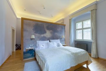 Vyberte si kterýkoliv z našich rozlehlých zámeckých pokojů a budete jednoduše unešení. Kromě neuvěřitelné rozlohy zámeckých aparmánů vás určitě zaujme náš jedinečný galerijní koncept. Naše hosty až natolik, že chtějí vyzkoušet znovu další a další suity. Atmosféra v pokojích je charakterizovaná obrazem, do kterého budete díky velkoplošným instalacím naprosto vtaženi.
